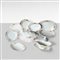 decorato a fiori, composto da: diciotto piatti piani, sei scodelle di cui una filata, sei piatti da frutta, una zuppiera, un¿alzata da frutta, due raviere, una salsiera, due vassoi ovali