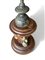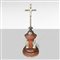 su alta base in noce tornita a plinto, contornata da tre figure di angeli assisi, in preghiera.
