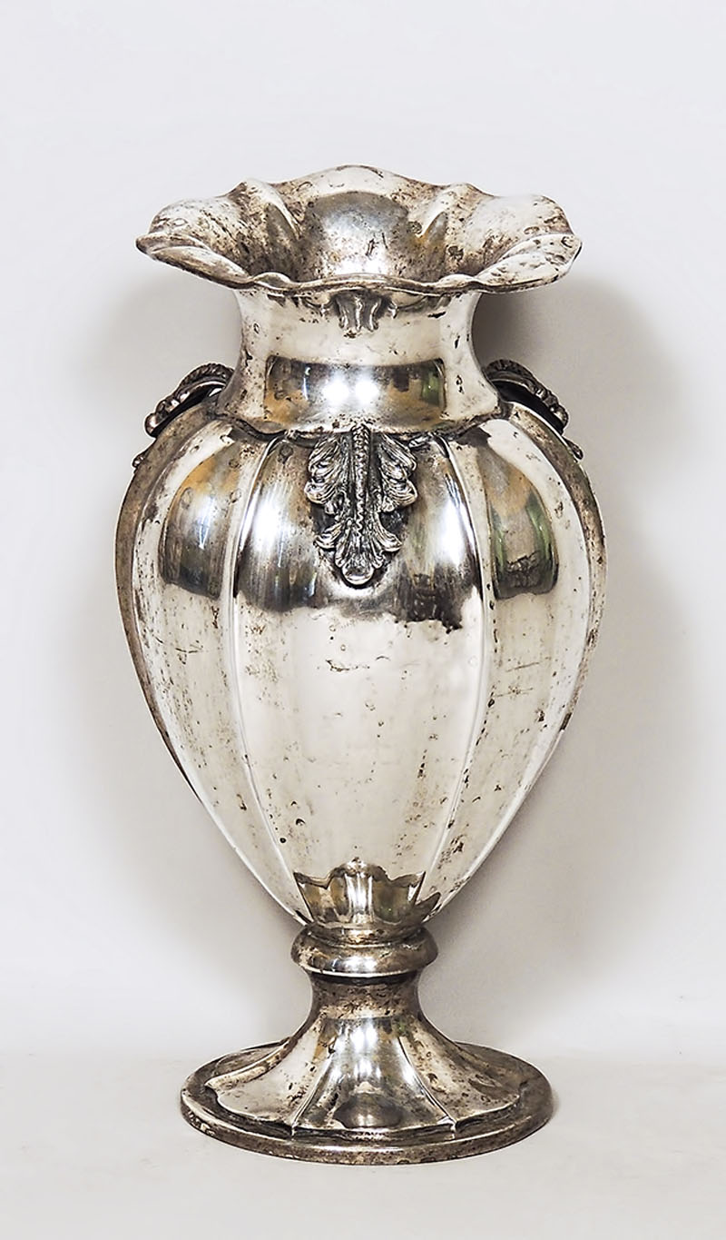 VASO A BALAUSTRO IN ARGENTO - SILVER BALUSTER VASE corpo decorato con foglie...