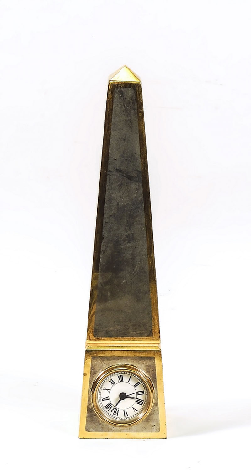 OROLOGIO DA TAVOLO IN METALLO - METAL TABLE CLOCK modellato come un obelisco,...