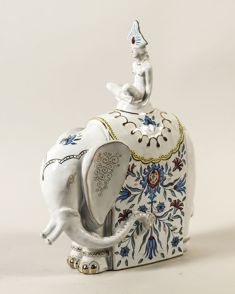 ELEFANTE CON BAJADERA - CERAMIC FIGURAL GROUP FAENZA gruppo in ceramica da un...
