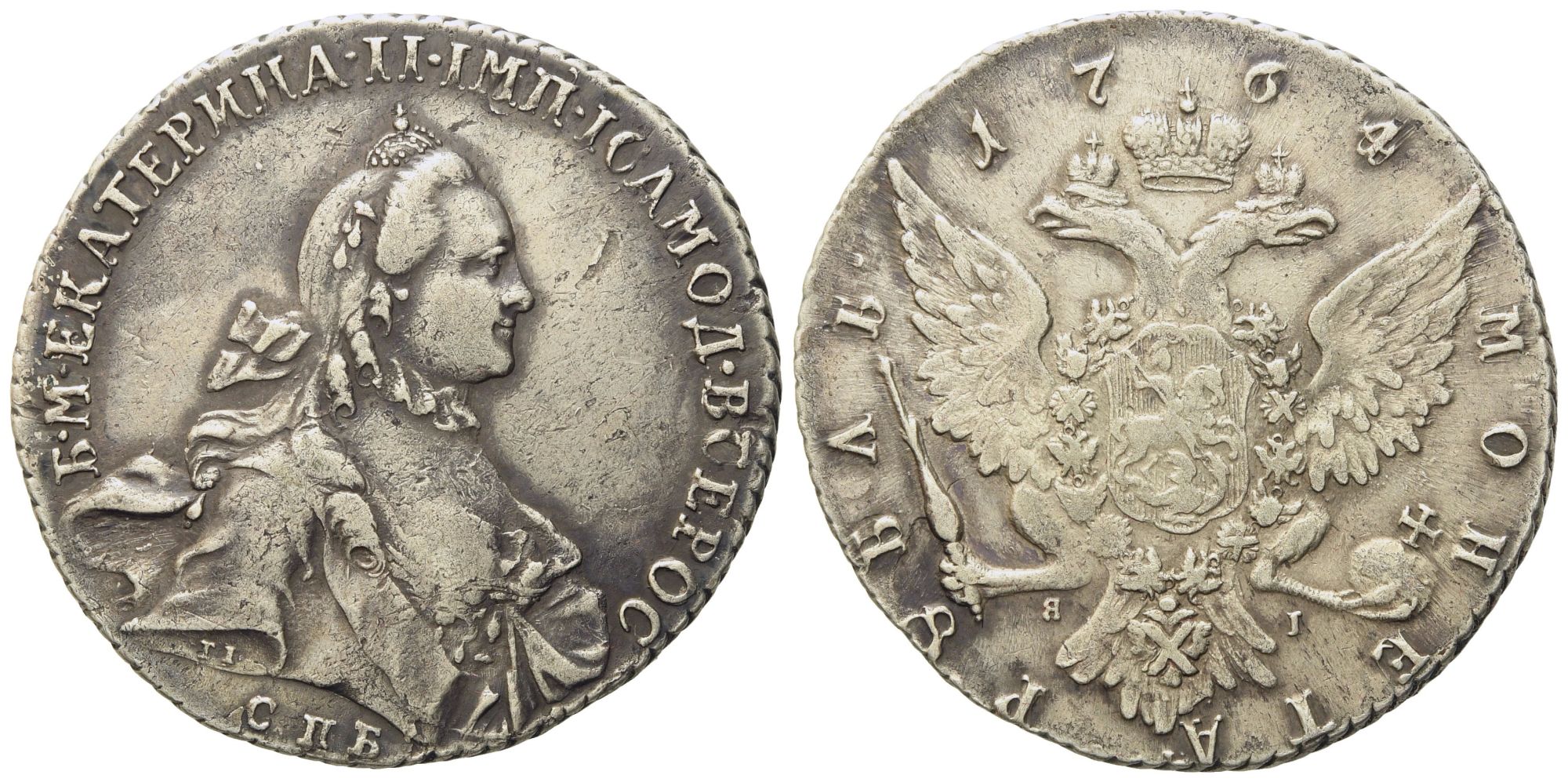 Lotto 50 | RUSSIA. San Pietroburgo. Caterina II (1762-1796). Rublo 1764. Ag (23,50 g; 37,8 mm)