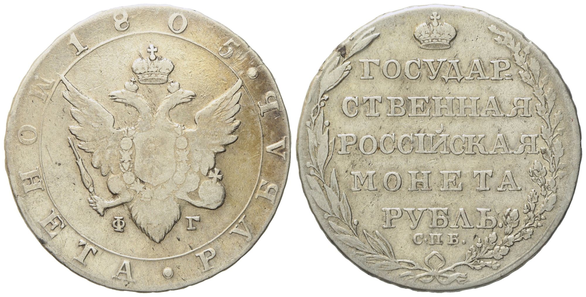 RUSSIA. San Pietroburgo. Alessandro I (1802-1825). Rublo 1805. Ag (20,70 g; 36,5 mm)