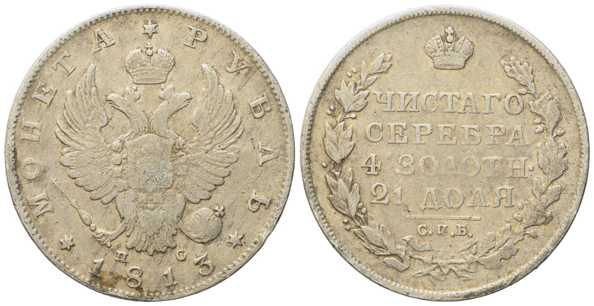 RUSSIA. San Pietroburgo. Alessandro I (1802-1825). Rublo 1813. Ag (20,40 g; 35,5 mm)