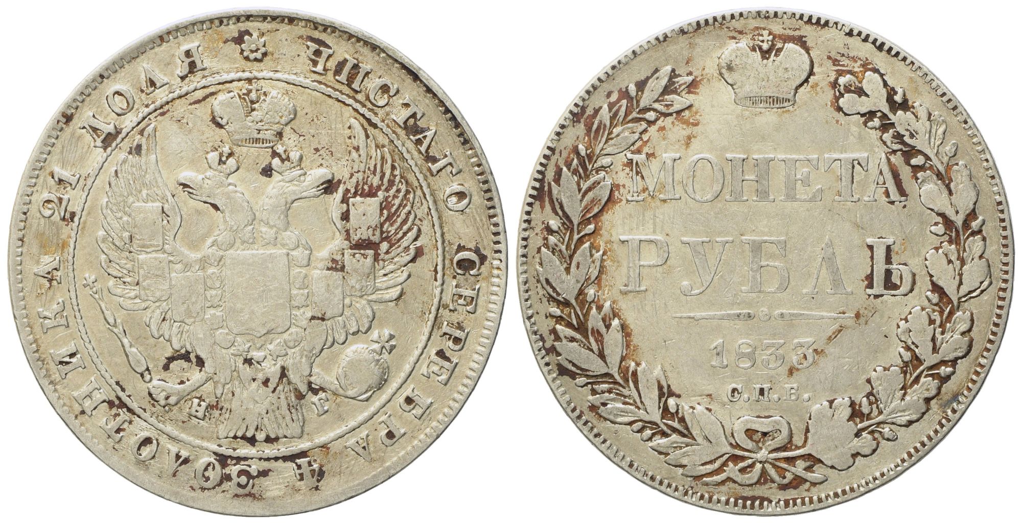 RUSSIA. San Pietroburgo. Nicola I (1825-1855). Rublo 1833. Ag (20,52 g; 35,5 mm)