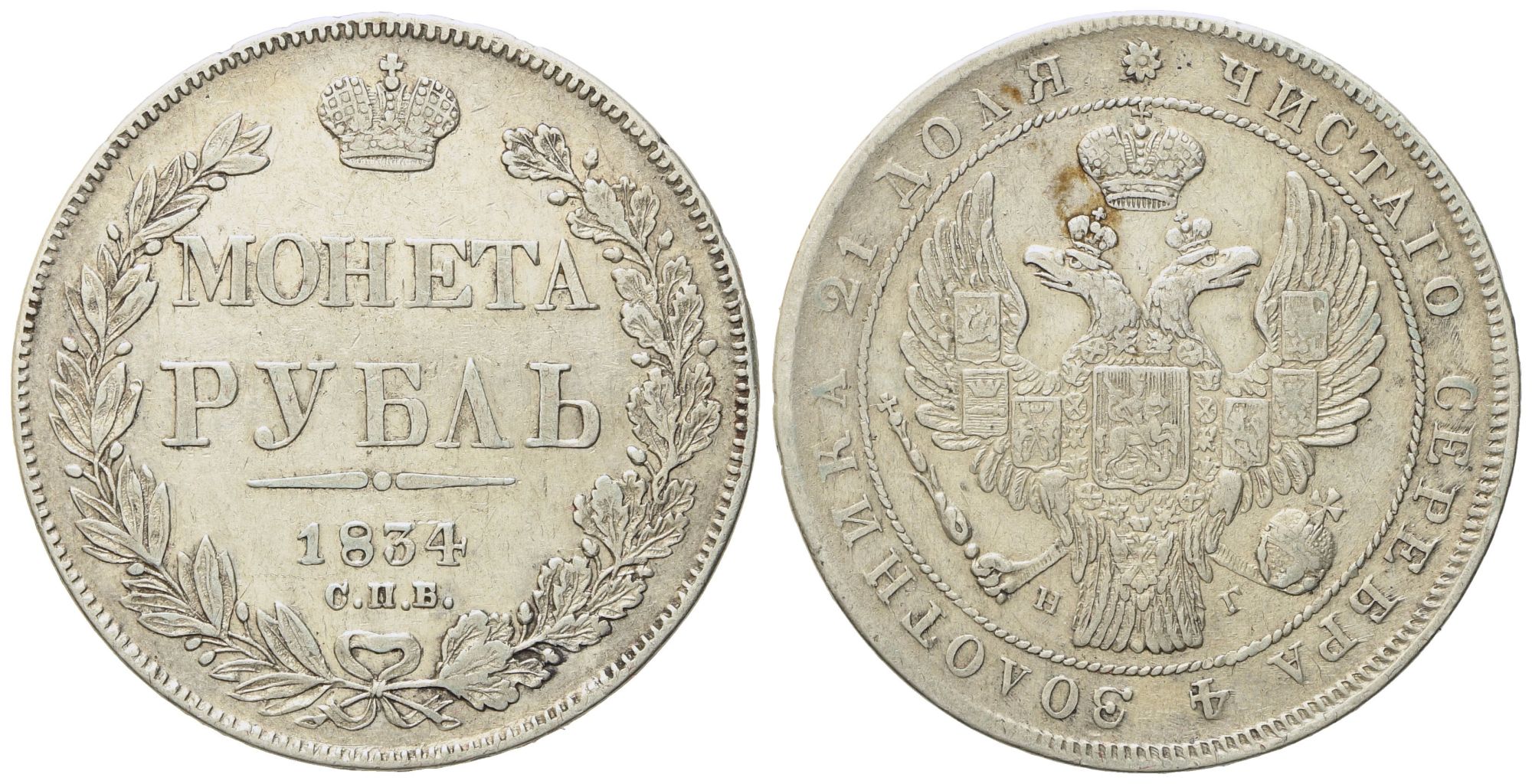 RUSSIA. San Pietroburgo. Nicola I (1825-1855). Rublo 1834. Ag (20,74 g; 35,4 mm)