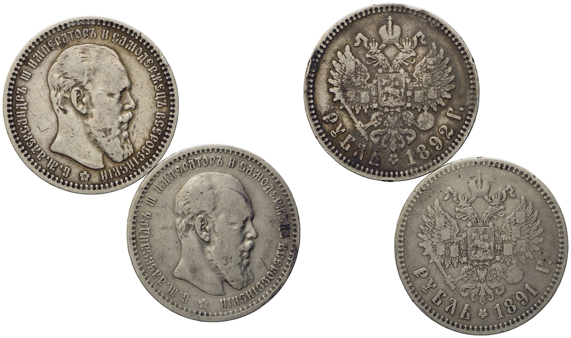 Lotto 66 | RUSSIA. San Pietroburgo. Alessandro III (1881-1894). Rublo 1891 - 1892. Lotto di due esemplari rari. Ag