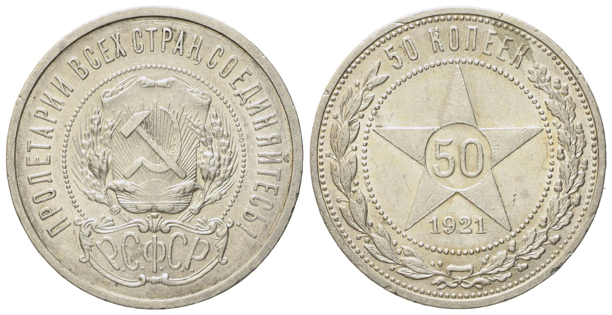 RUSSIA. URSS. Mezzo rublo, 50 copechi 1921. Ag (10 g; 26,4 mm)