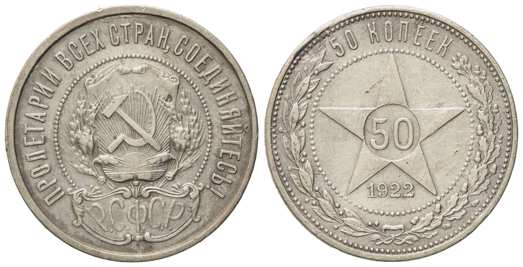 RUSSIA. URSS. Mezzo rublo, 50 copechi 1922. Ag (9,95 g; 26,3 mm)