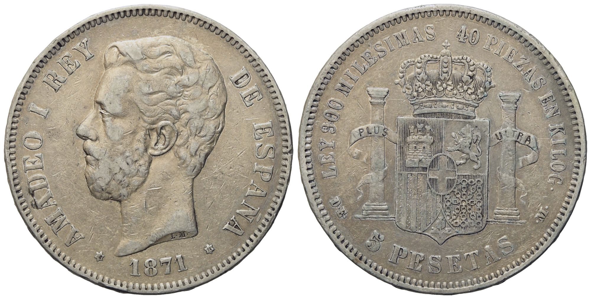 SPAGNA. Amedeo I (1871-1873). 5 pesetas 1871. Ag (24,90 g; 37 mm)