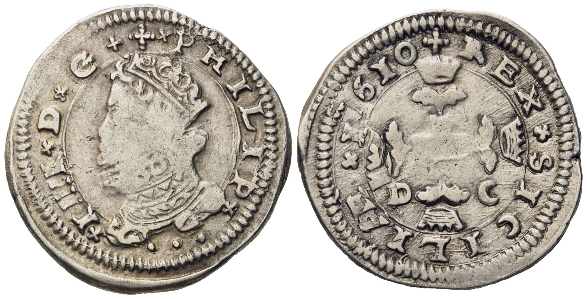 MESSINA. regno di Sicilia. Filippo III di Spagna (1598-1621). 3 tarì 1610. Ag (7,79 g; 27,2 mm)