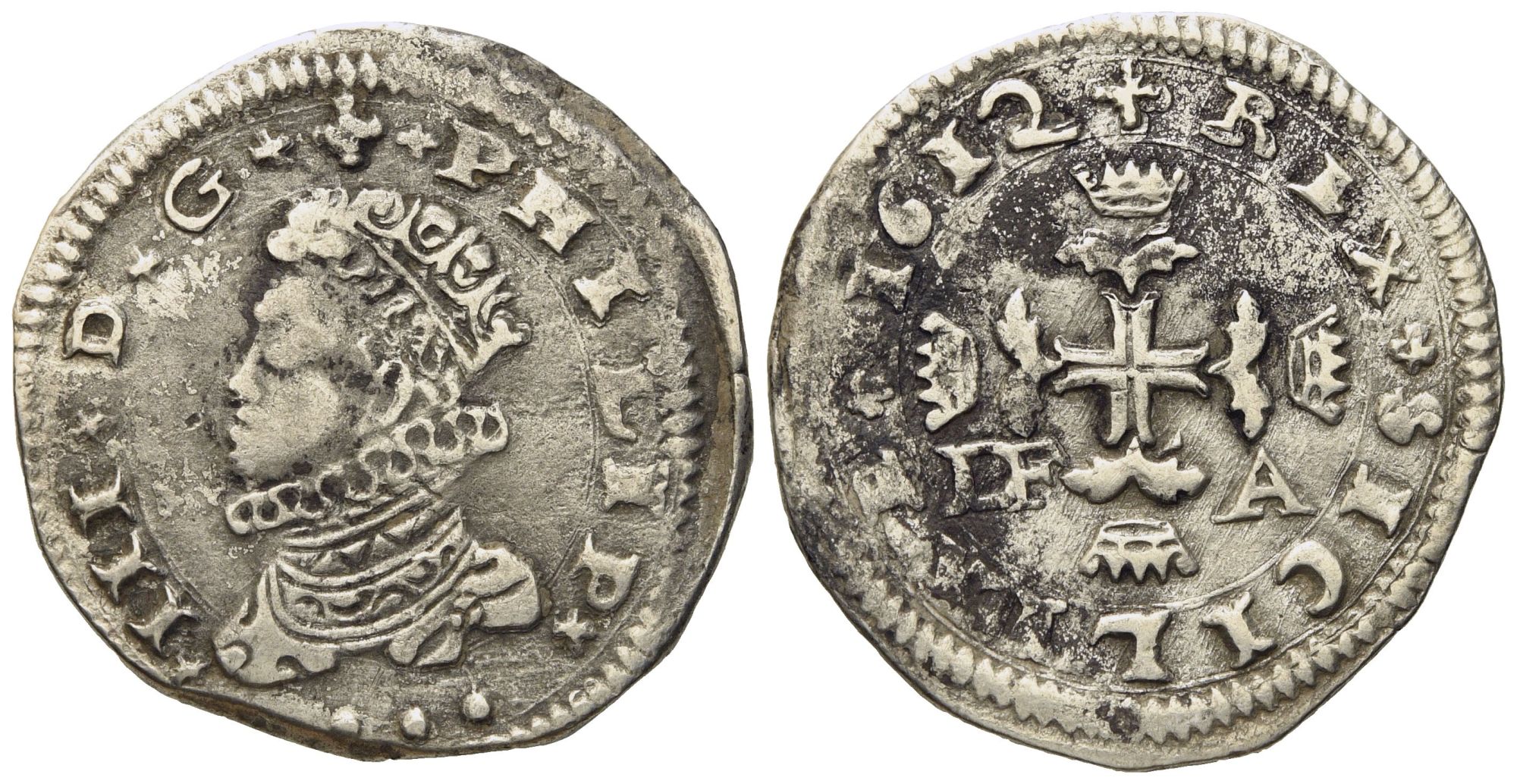 MESSINA. Regno di Sicilia. Filippo III di Spagna (1598-1621). 3 tarì 1612. Ag (7,68 g; 26,5 mm)
