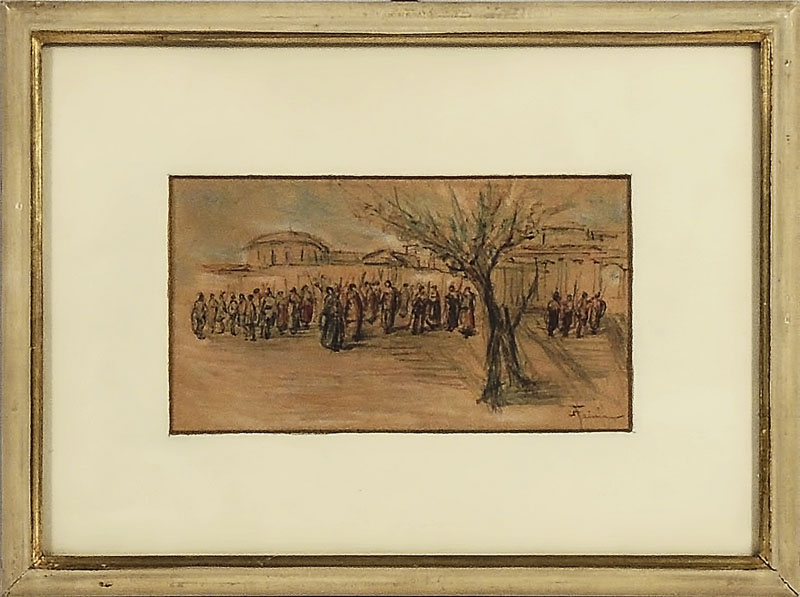 Lotto 481 | SCORCIO DI CITTÀ CON FIGURE - TOWN VIEW WITH FIGURES tecnica mista su carta -...