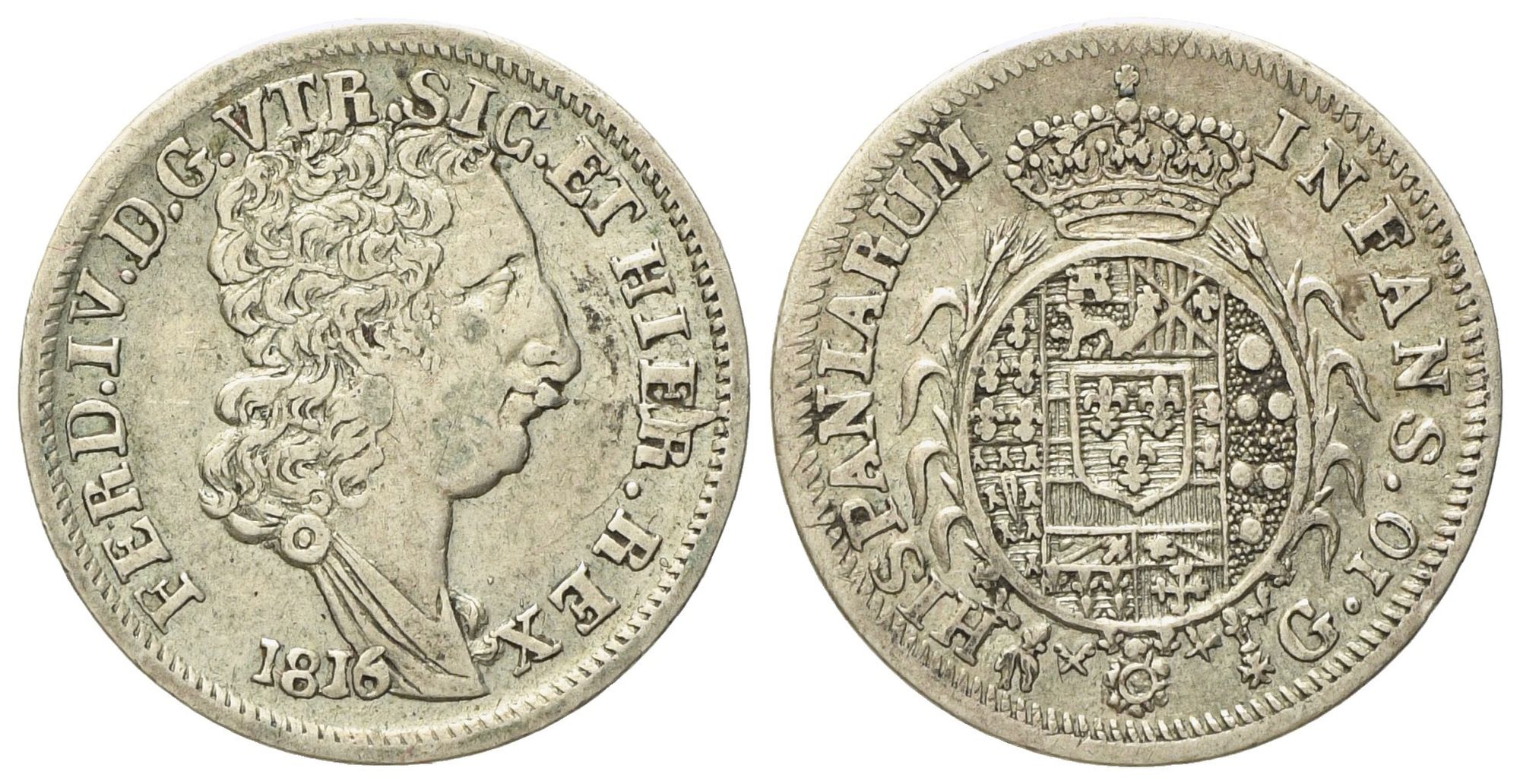 NAPOLI. Regno di Napoli. Ferdinando IV di Borbone (1815-1816 III periodo). Carlino da 10 grana 1816. Ag (2,25 g; 17,7 mm)