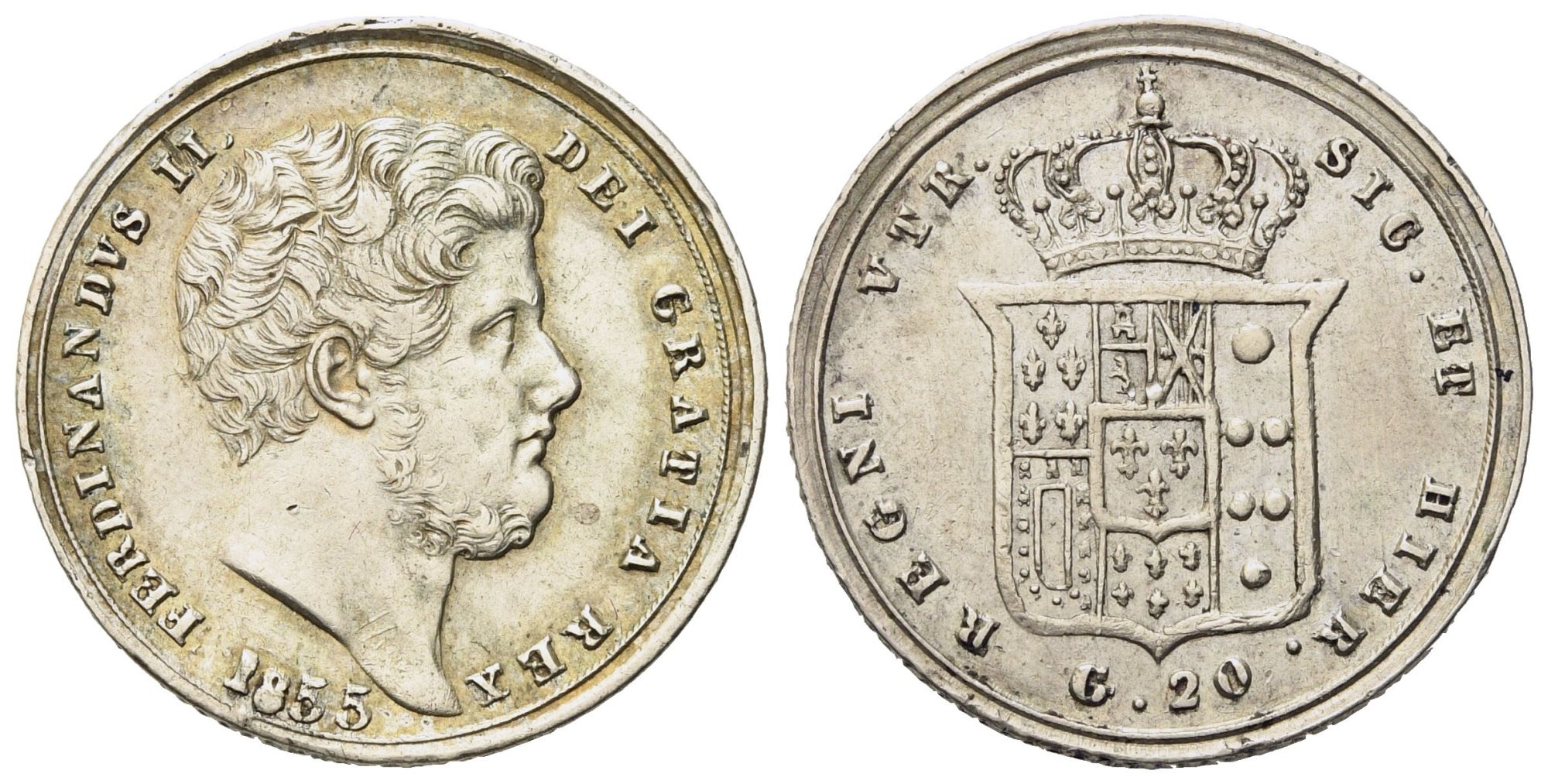 NAPOLI. Regno delle Due Sicilie. Ferdinando II di Borbone (1830-1859). Tarì da 20 grana 1855. Ag (4,58 g; 21,5 mm)