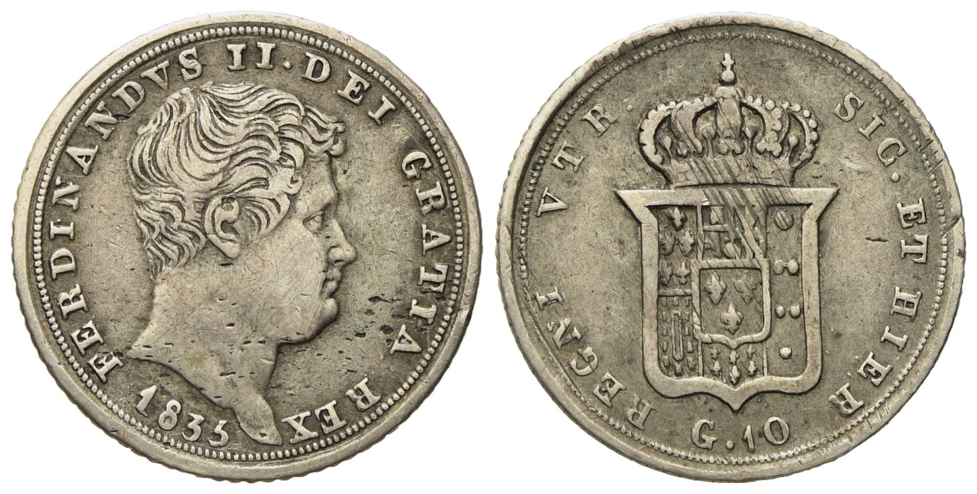 Lotto 208 | NAPOLI. Regno delle Due Sicilie. Ferdinando II di Borbone (1830-1859). Carlino da 10 Grana 1835. Ag (2,24 g; 18,2 mm).