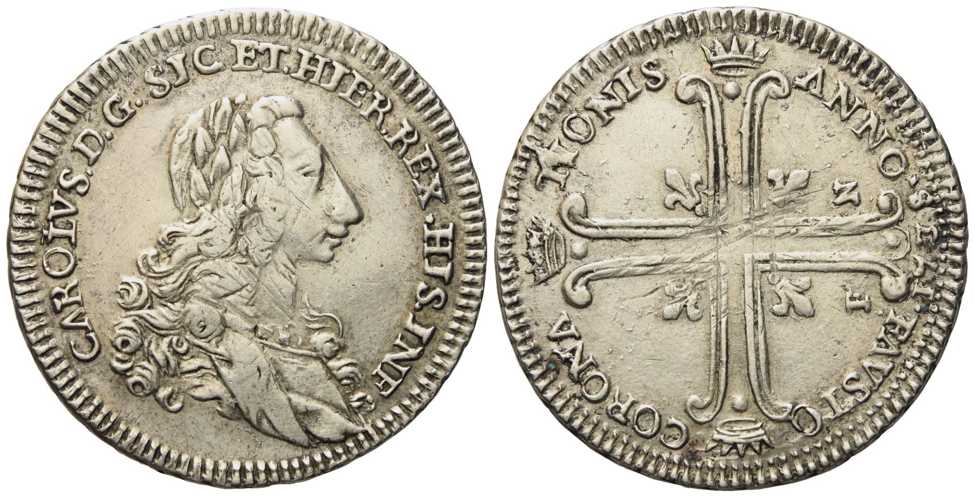 Palermo. Regno di Sicilia. Carlo di Borbone (1734 - 1759). 6 tarì 1735. Ag (13,40 g; 33 mm)