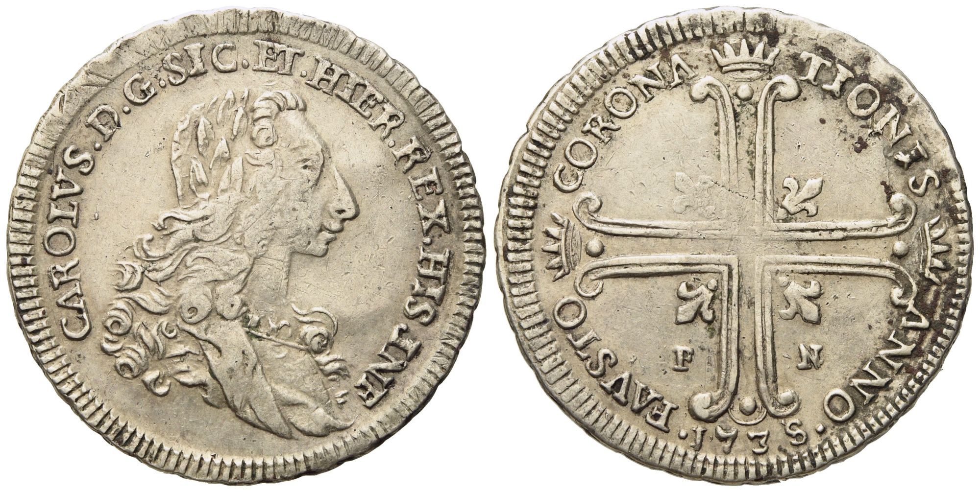Palermo. Regno di Sicilia. Carlo di Borbone (1734 - 1759). 6 tarì 1735. Ag (13,45 g; 33,4 mm)