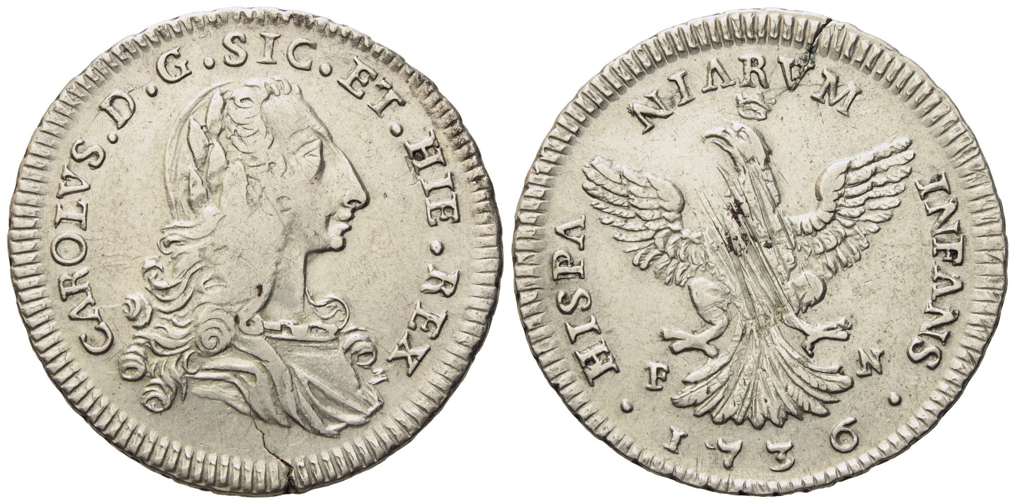 Palermo. Regno di Sicilia. Carlo di Borbone (1734 - 1759). 4 tarì 1736. Ag (9,08 g; 31,4 mm)