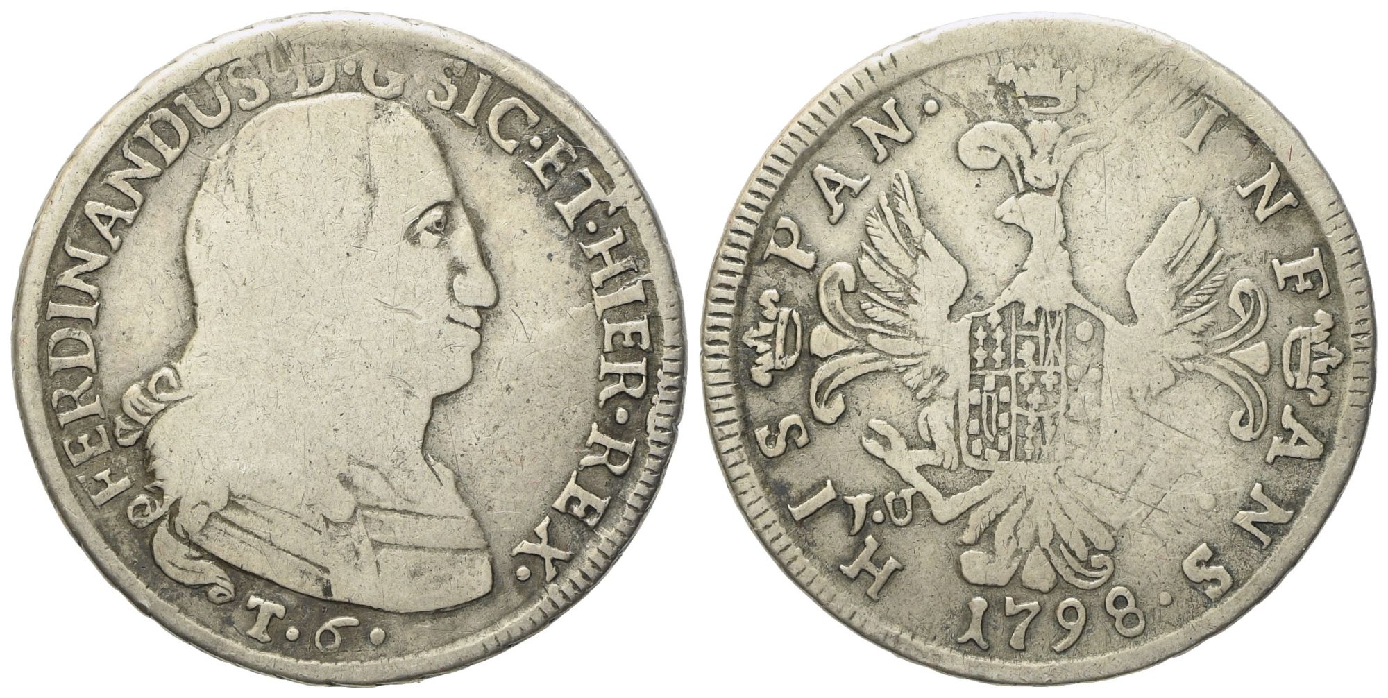 PALERMO. Regno di Sicilia. Ferdinando III di Borbone (1759-1816). 6 tarì 1798. Ag (13,15 g; 32,2 mm)
