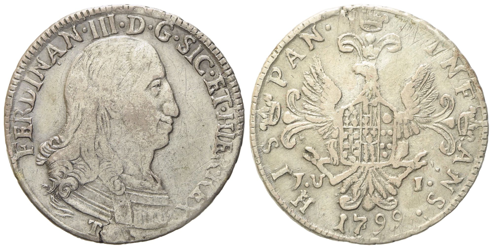 PALERMO. Regno di Sicilia. Ferdinando III di Borbone (1759-1816). 6 tarì 1799. Ag (13,60 g; 30,5 mm)