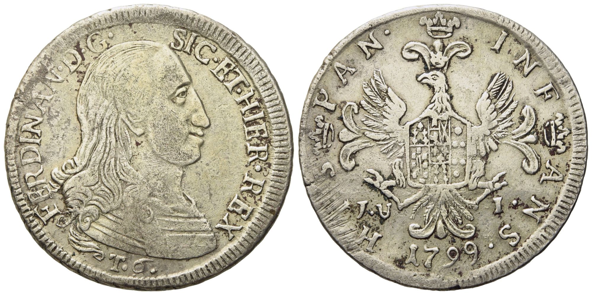 PALERMO. Regno di Sicilia. Ferdinando III di Borbone (1759 - 1816). 6 tarì 1799. Ag (13,28 g; 31,8 mm)
