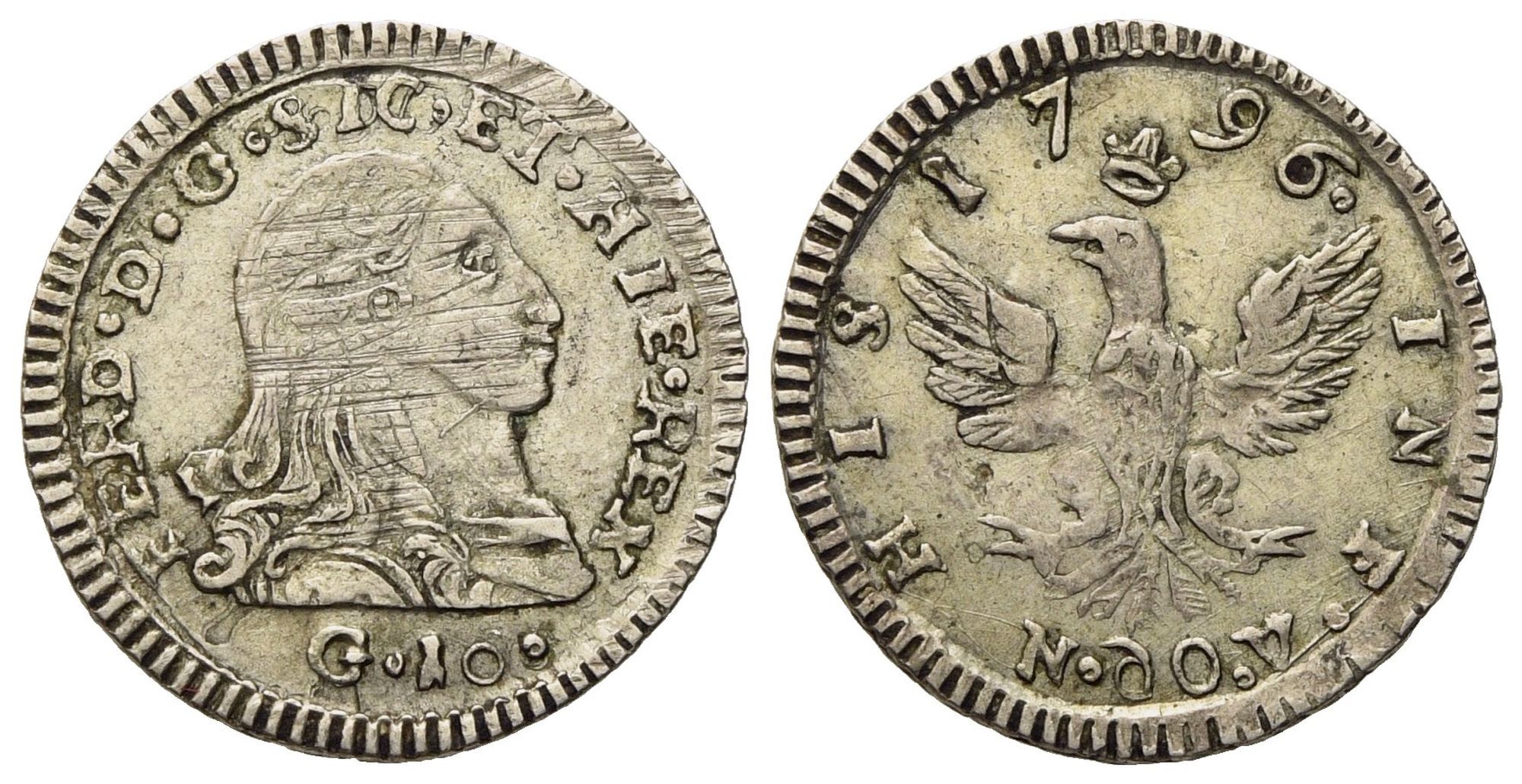 PALERMO. Regno di Sicilia. Ferdinando III di Borbone (1759 - 1816). Mezzo tarì 1796. Ag (1,13 g; 15,7 mm)