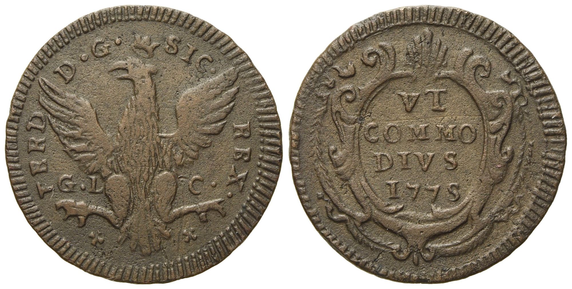 Lotto 278 | PALERMO. Regno di Sicilia. Ferdinando III di Borbone (1759 - 1816). Grano 1775. Cu (3,92 g; 24 mm)