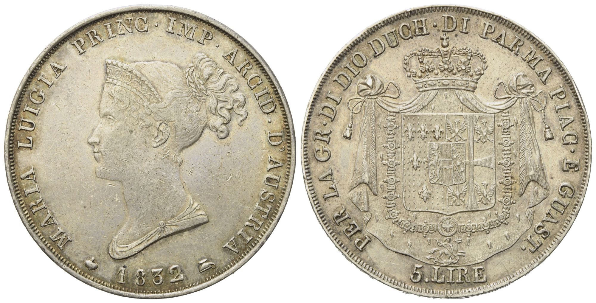 PARMA. Ducato di Parma. Maria Luigia d'Austria (1815-1847). 5 lire 1832. Ag (25 g; 37 mm)