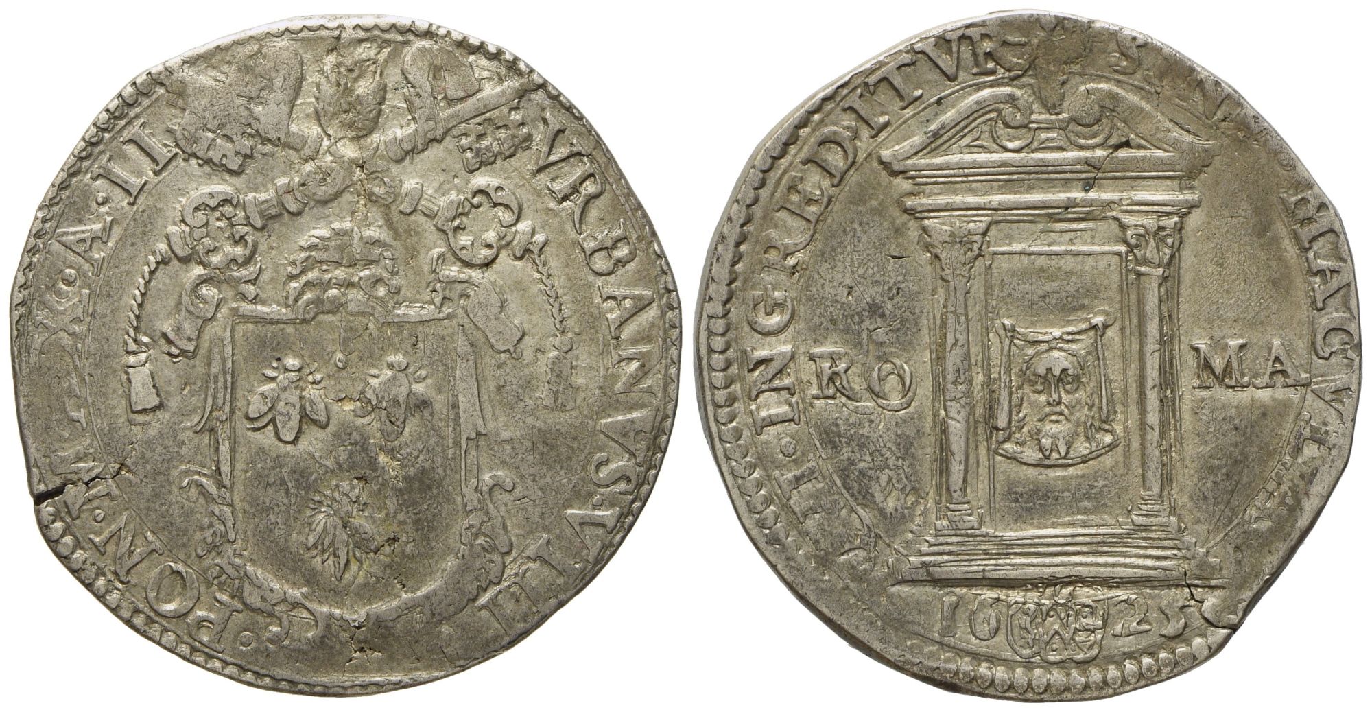 Lotto 352 | STATO PONTIFICIO. Roma. Urbano VIII (1623 - 1644). Testone 1625. Ag (9,4 g; 28,4 mm)
