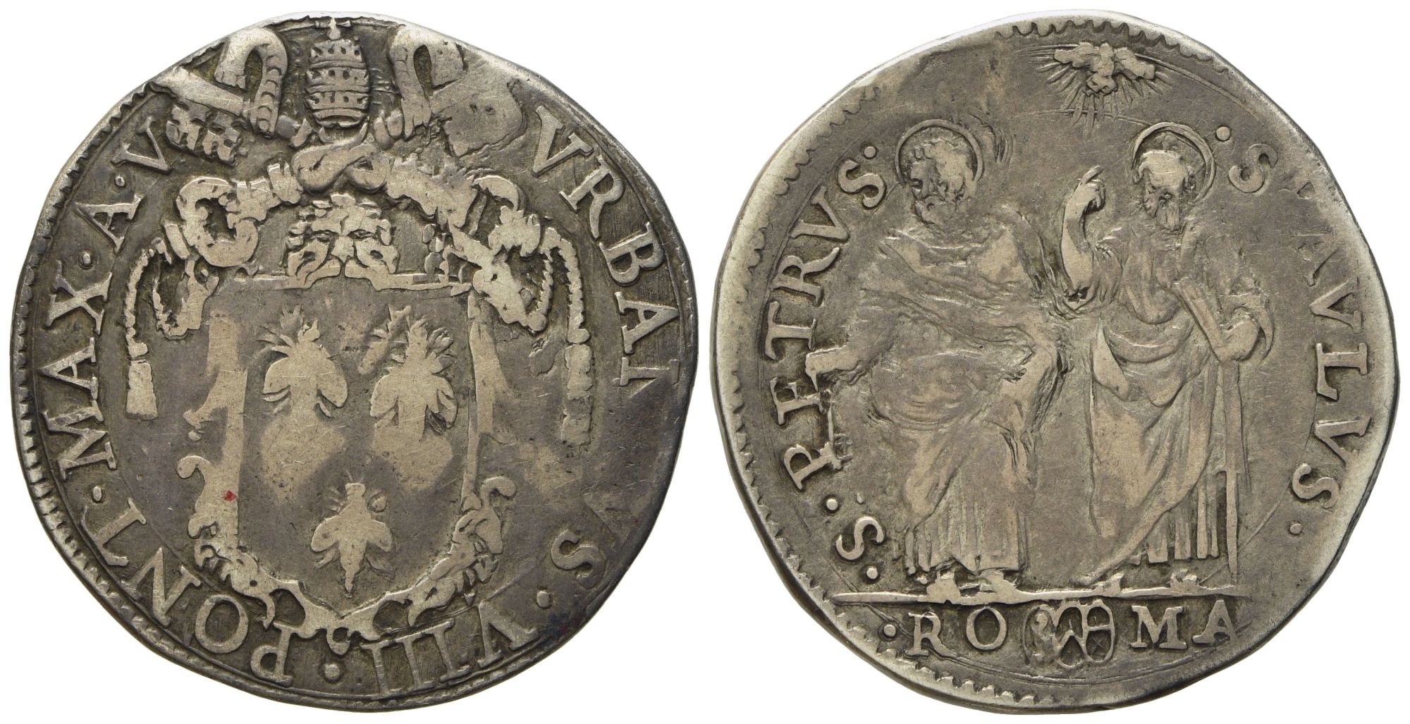STATO PONTIFICIO. Roma. Urbano VIII (1623 - 1644). Testone, anno V. Ag (9,38 g; 29,5 mm)