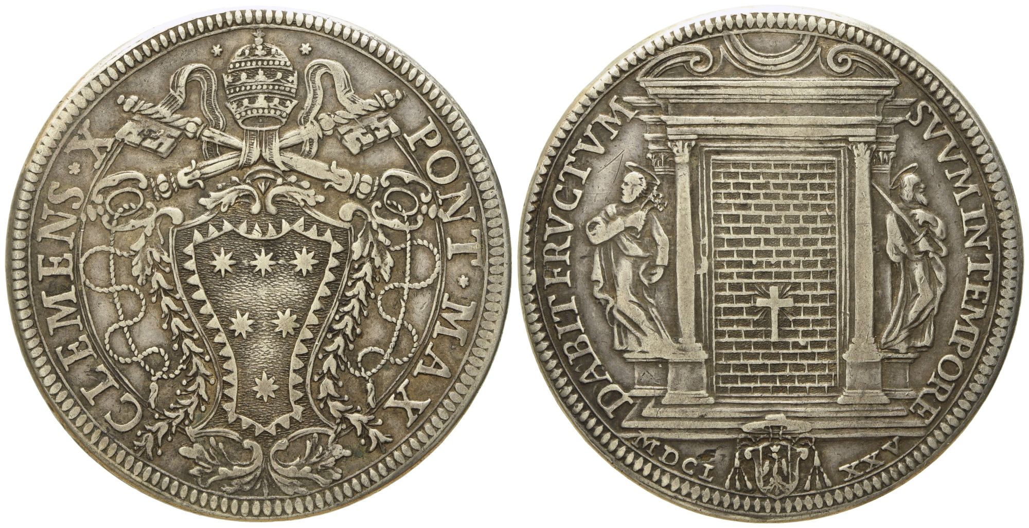 STATO PONTIFICIO. Roma. Clemente X (1670 - 1676). Piastra 1675 "Giubileo, chiusura porta santa". Ag (31,48 g; 44,2 mm)