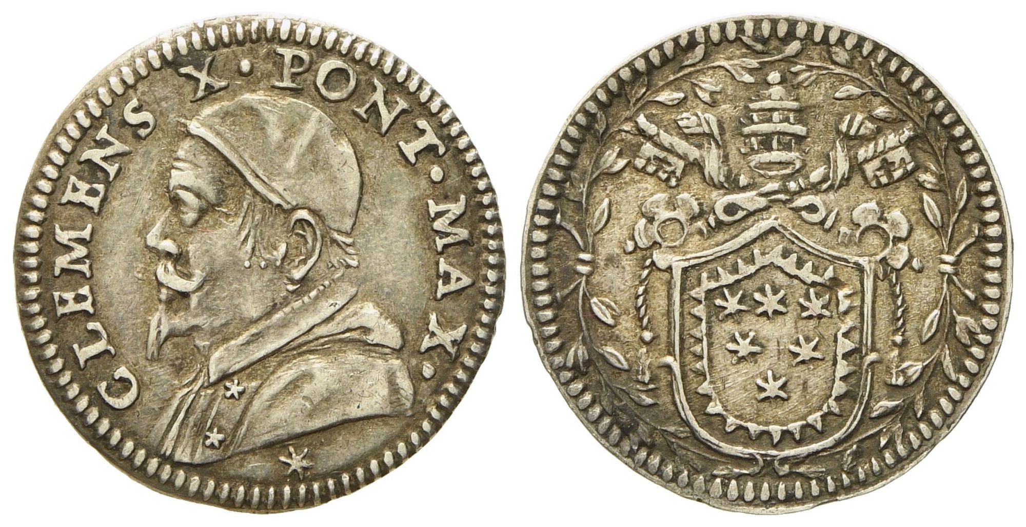 STATO PONTIFICIO. Roma. Clemente X (1670 - 1676). Mezzo grosso. Ag (g 0,75; mm 15,3).