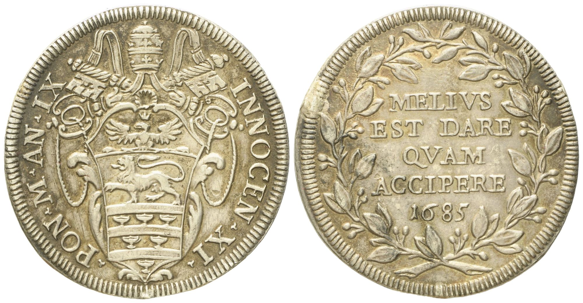 STATO PONTIFICIO. Roma. Innocenzo XI (1676 - 1689). Testone 1685. Ag (g 8,94; mm 31,7).