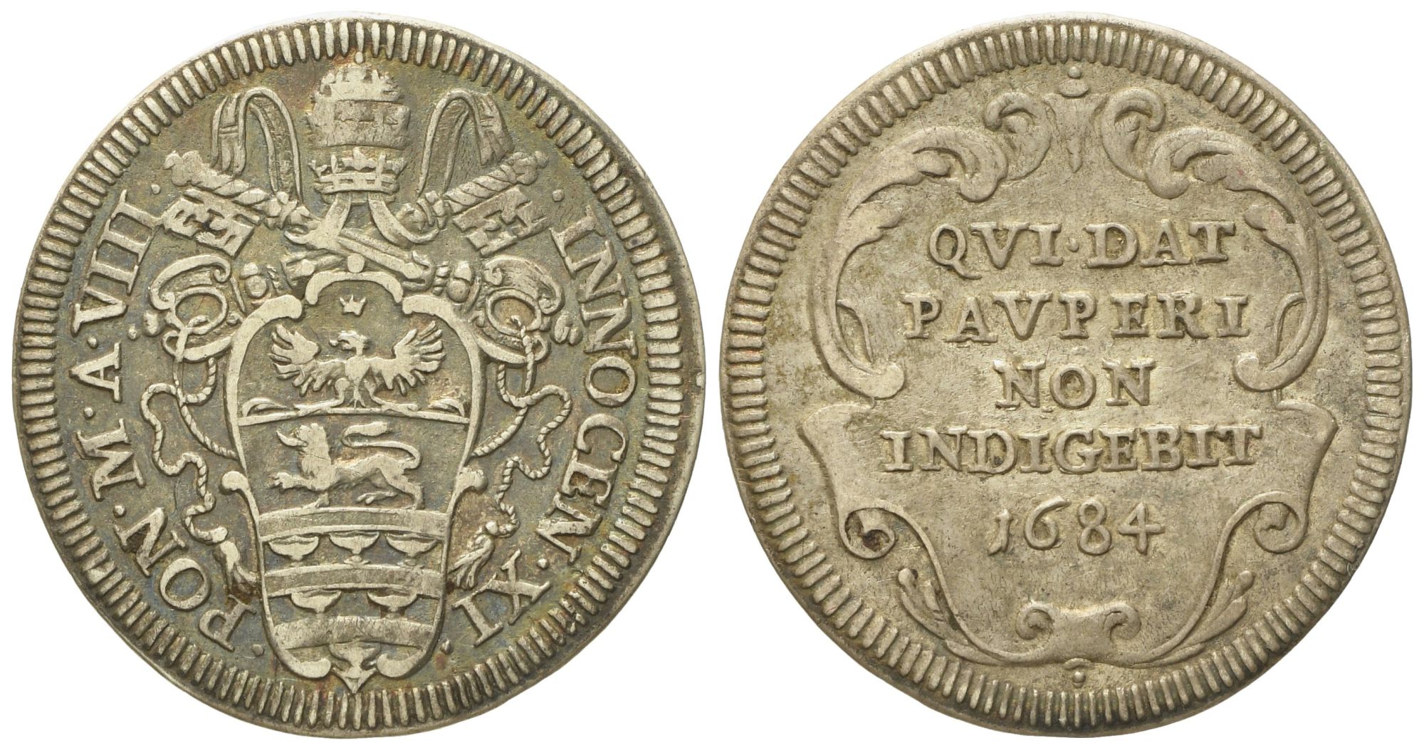 STATO PONTIFICIO. Roma. Innocenzo XI (1676 - 1689). Giulio 1684 anno VIII. Ag (2,95 g; 26,3 mm)