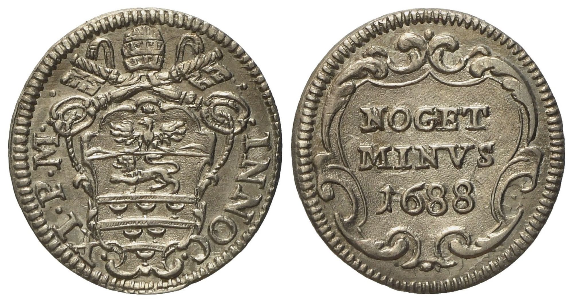 Lotto 397 | STATO PONTIFICIO. Roma. Innocenzo XI (1676 - 1689). Mezzo grosso 1688. Ag (0,79 g; 15,2 mm)