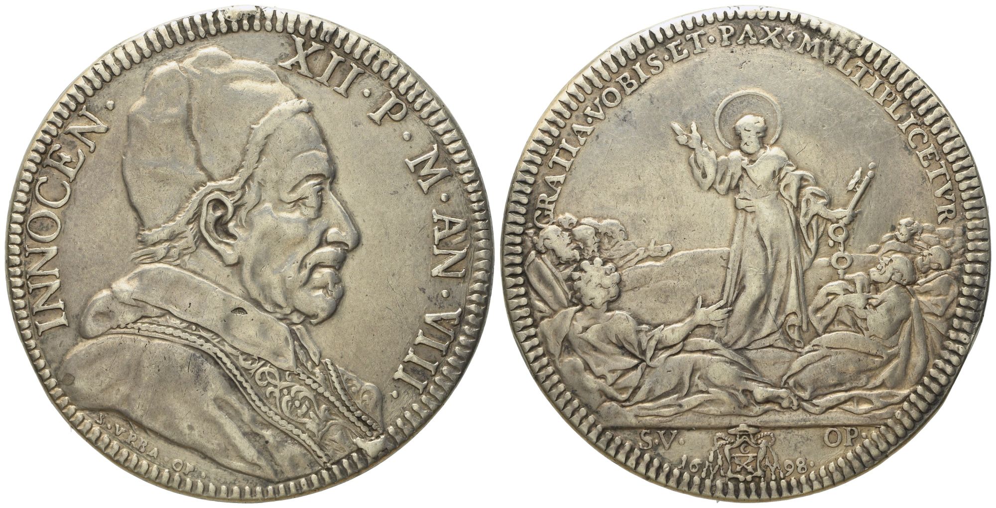 STATO PONTIFICIO. Roma. Innocenzo XII (1691 - 1700). Piastra 1698 "San Pietro". Ag (31,54 g; 45 mm)