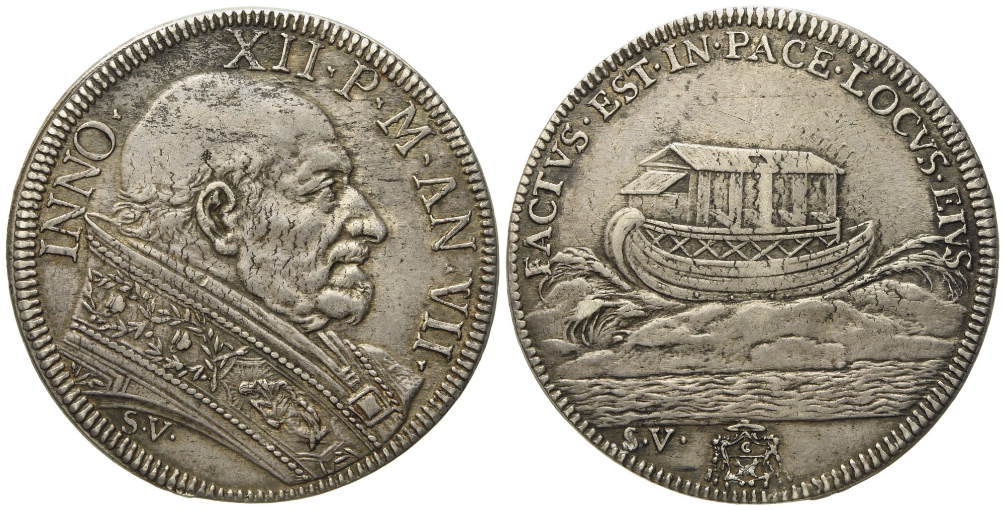STATO PONTIFICIO. Roma. Innocenzo XII (1691 - 1700). Mezza piastra 1697 "Arca di Noè". Ag (16,03 g; 37,5 mm)