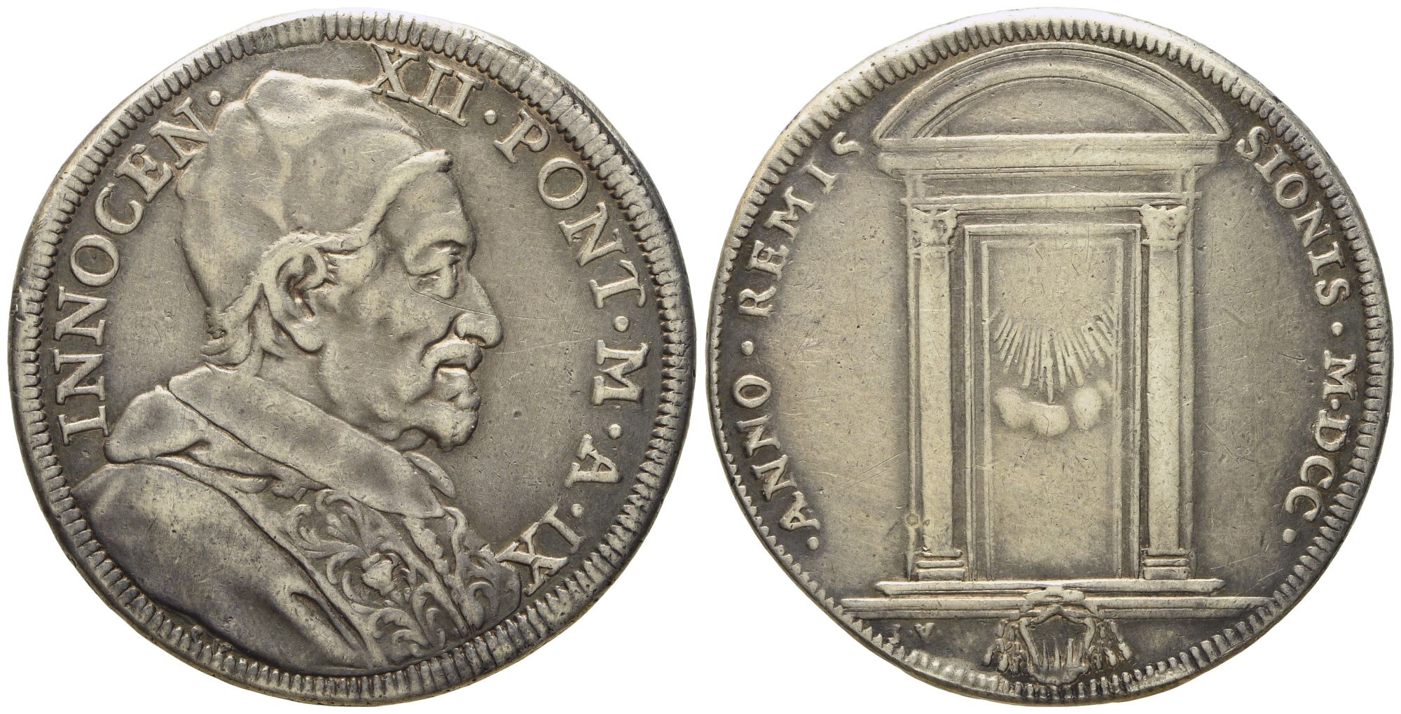 STATO PONTIFICIO. Roma. Innocenzo XII (1691 - 1700). Mezza piastra 1700 "Giubileo, porta santa". Ag (15,51 g; 36,8 mm)