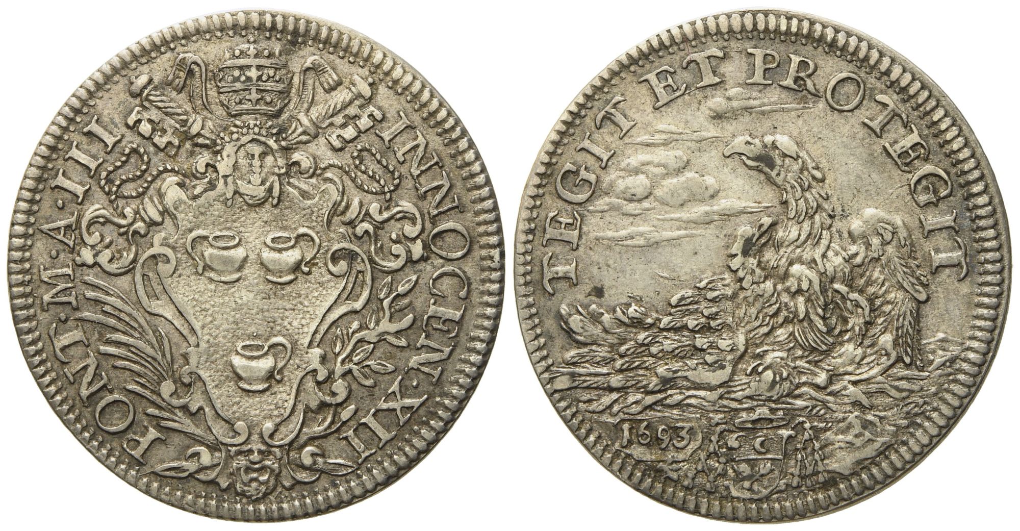 STATO PONTIFICIO. Roma. Innocenzo XII (1691 - 1700). Testone 1693 "Aquila". Ag (9,11 g; 31,9 mm)
