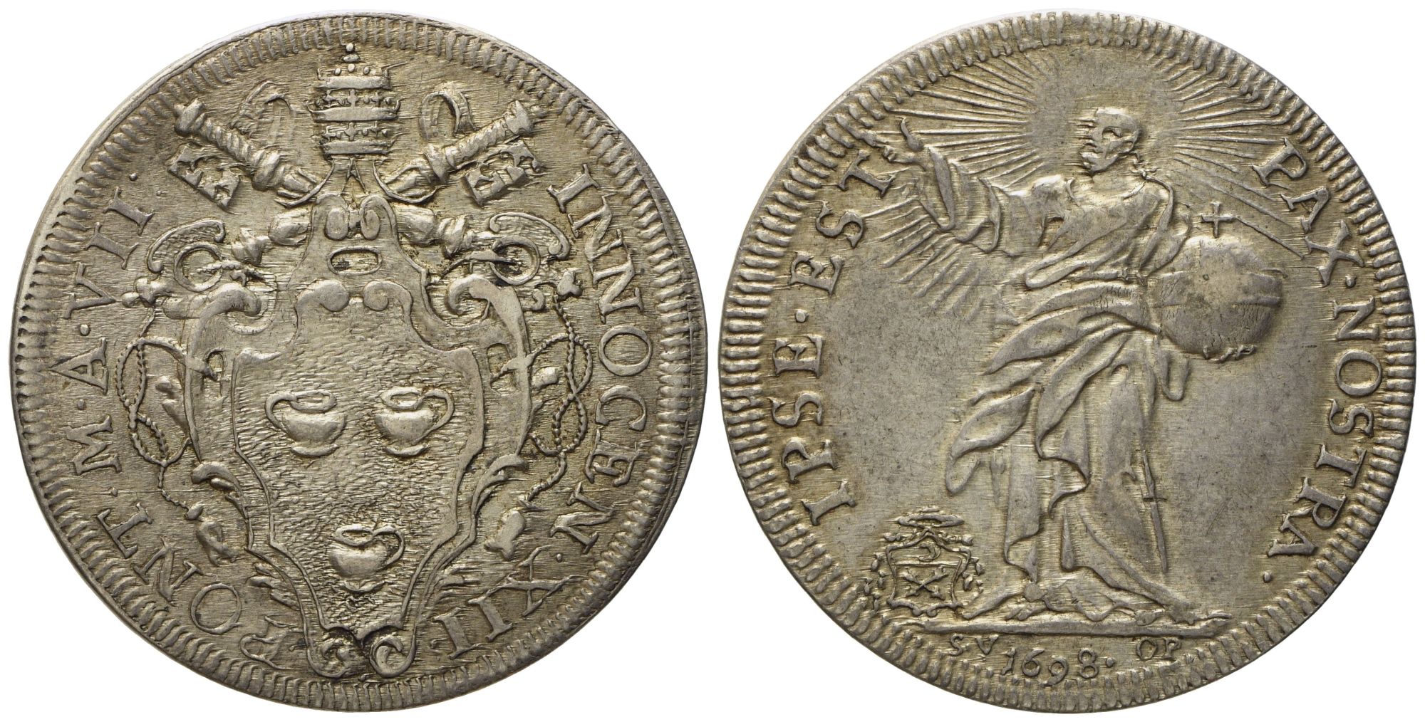 Lotto 422 | STATO PONTIFICIO. Roma. Innocenzo XII (1691 - 1700). Testone 1698 "Cristo Redentore". Ag (9,1 g; 32,7 mm)