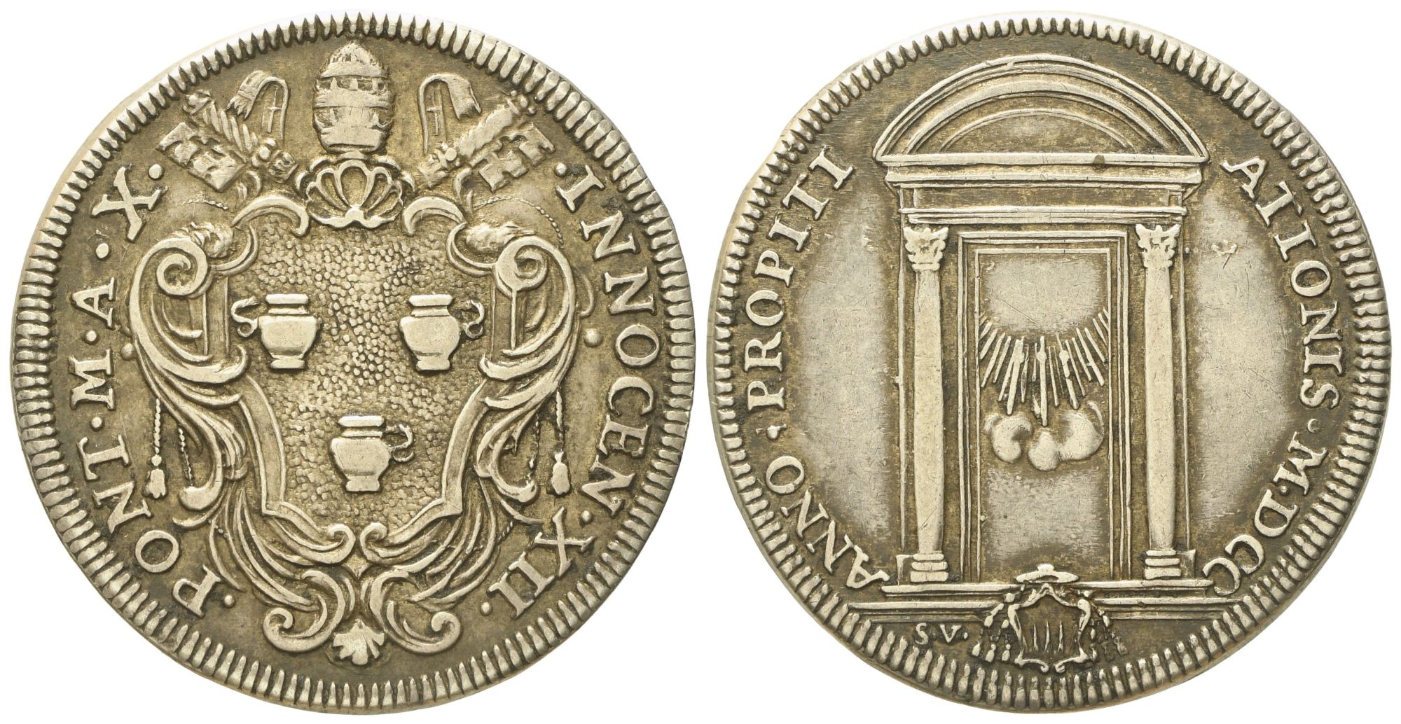Lotto 423 | STATO PONTIFICIO. Roma. Innocenzo XII (1691 - 1700). Testone 1700 "Giubileo, porta santa". Ag (9,1 g; 32,2 mm)