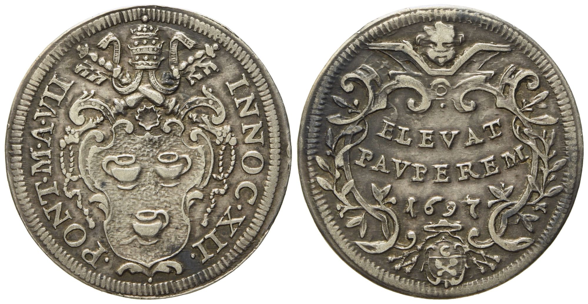 STATO PONTIFICIO. Roma. Innocenzo XII (1691 - 1700). Giulio 1697. Ag (3,04 g; 25,5 mm)