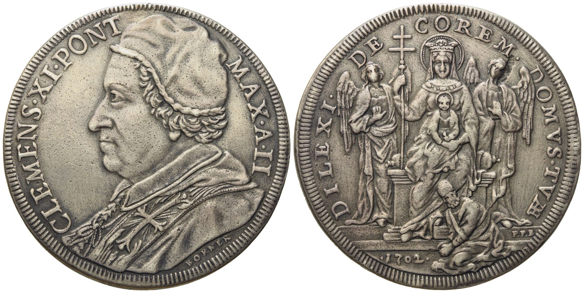 Stato Pontificio. Roma. Clemente XI (1700 - 1721). Piastra 1702 "Madonna di Santa Maria in Trastevere". Ag (31,58 g; 45,5 mm)
