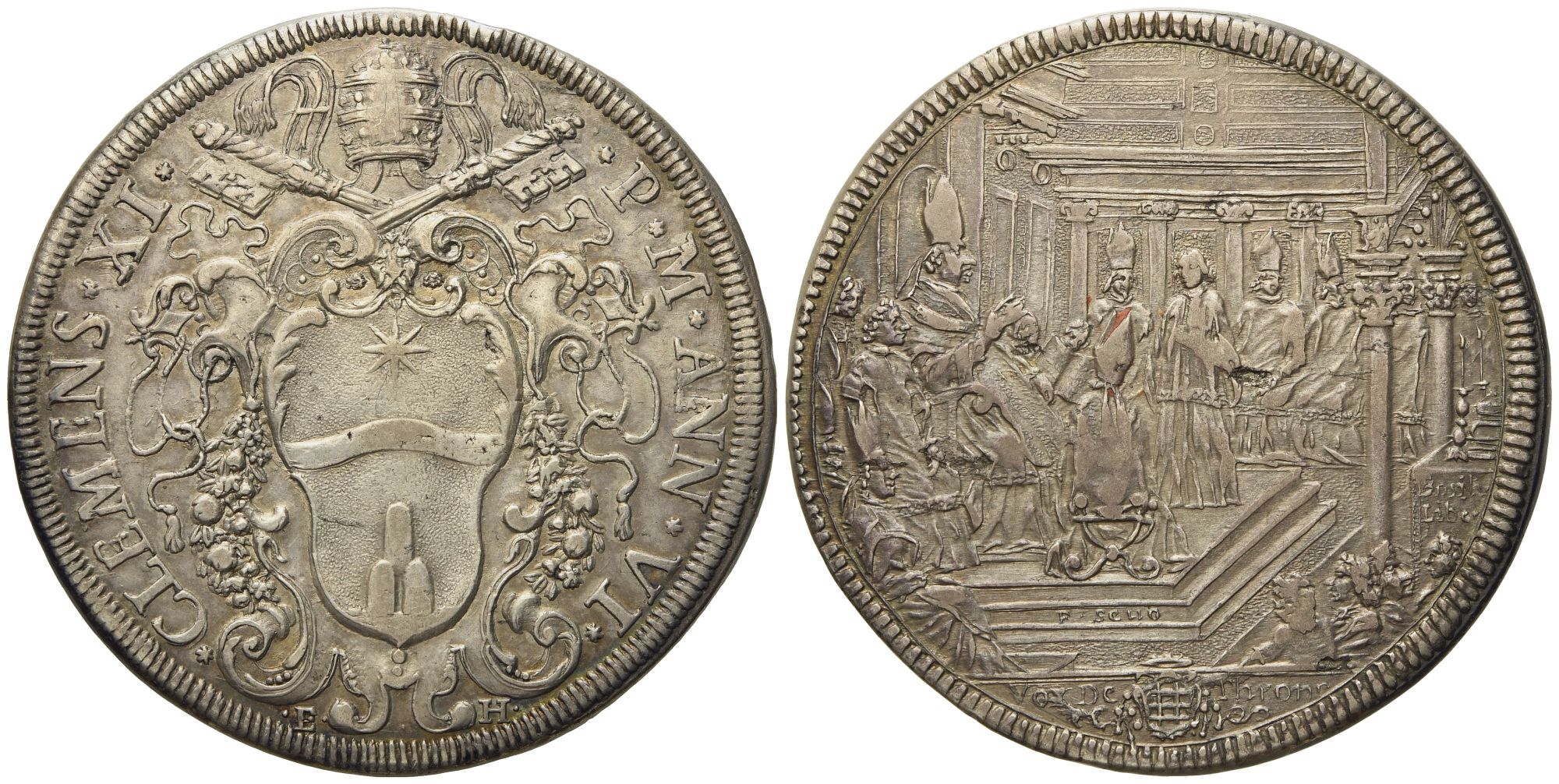 STATO PONTIFICIO. Roma. Clemente XI (1700 - 1721). Piastra anno VI. Ag (31,8 g; 46,4 mm)