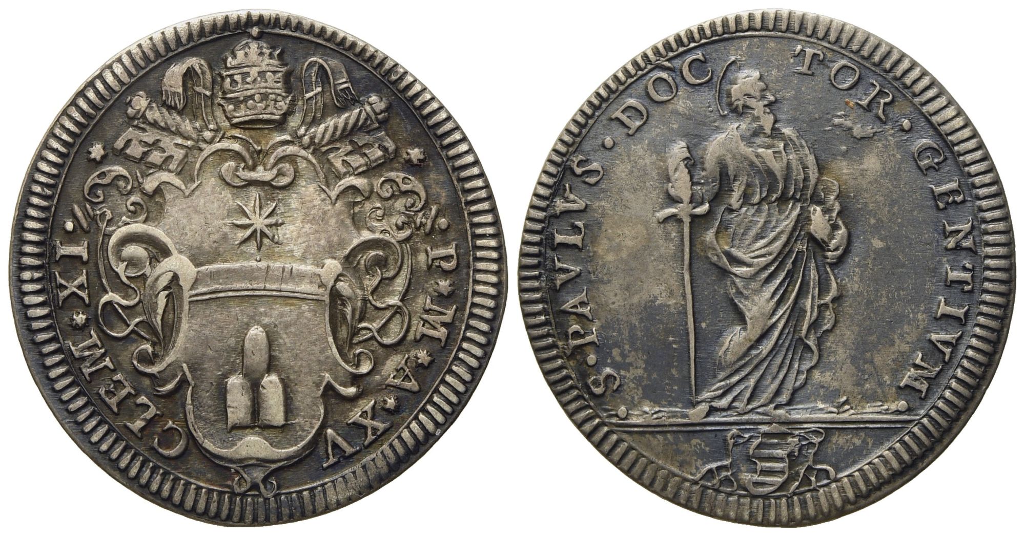 STATO PONTIFICIO. Roma. Clemente XI (1700 - 1721). Giulio, anno XV "San Paolo". Ag (3,04 g; 26 mm)