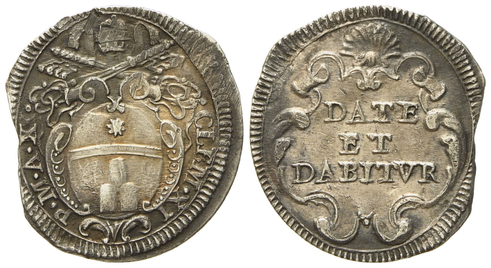 STATO PONTIFICIO. Roma. Clemente XI (1700 - 1721). Grosso anno X. Ag (g 1,35; mm 18,5).
