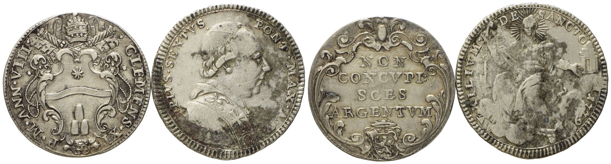 STATO PONTIFICIO. Roma. Lotto composto da n. 2 esemplari. Clemente XI (1700 - 1721). Giulio anno VIII - Pio VI (1775 - 1799). Doppio giulio 1779. Ag (5,26 g; 25,50) (2,53 g; 23,85 mm)
