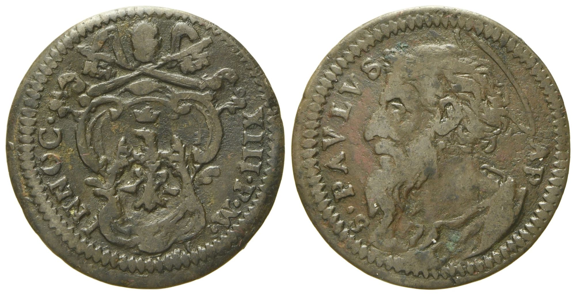 STATO PONTIFICIO. Roma. Innocenzo XIII (1721 - 1724). Quattrino. Cu (g 2,47; mm 20,3).