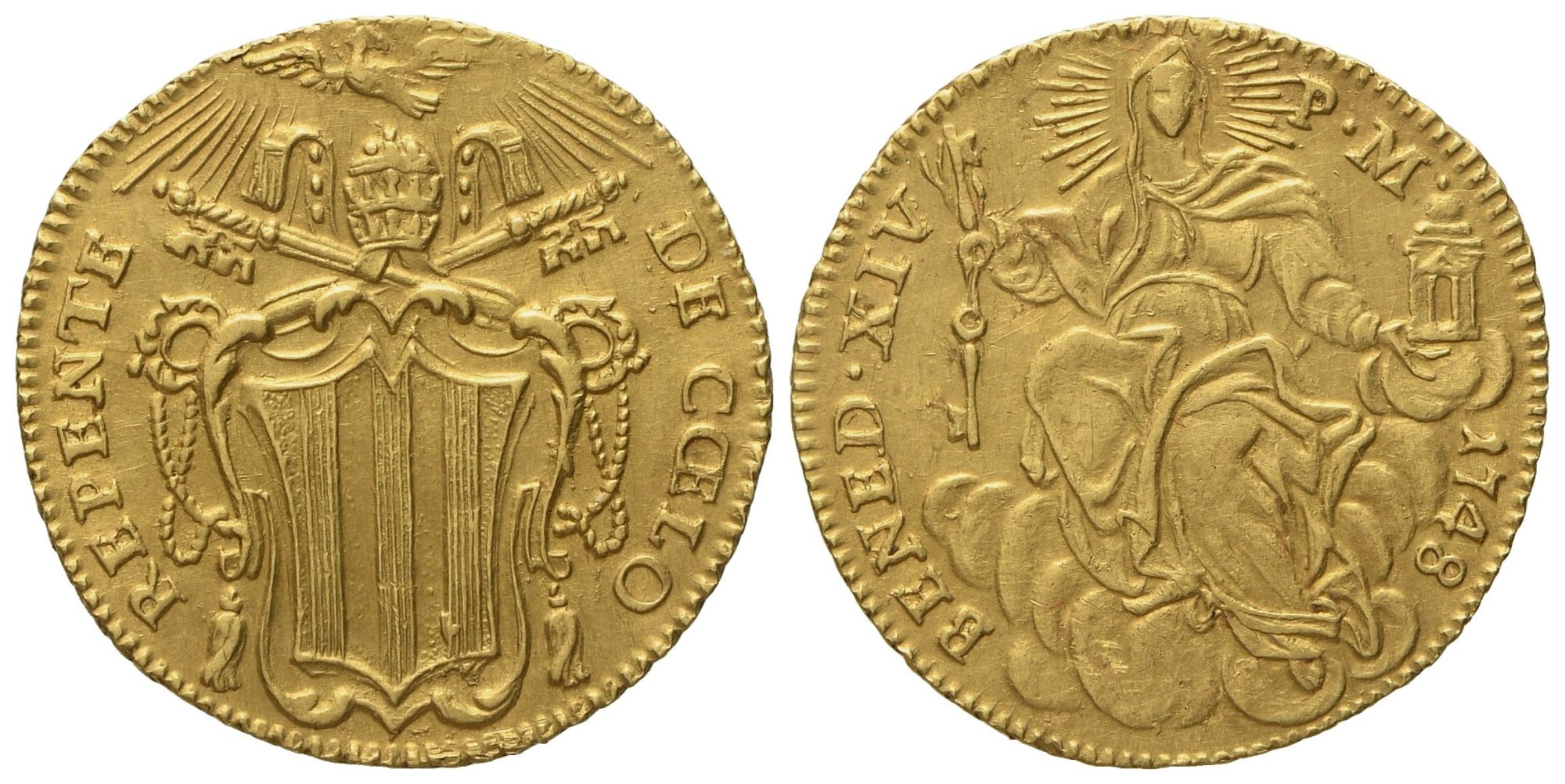 Lotto 461 | STATO PONTIFICIO. Roma. Benedetto XIV (1740 - 1758). Zecchino 1748. Au (3,40 g; 20,8 mm)